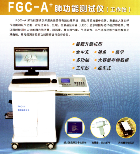 南京科悅醫療器械有限公司FGC-A+肺功能測試儀采用微電腦處理系統,通過呼吸流量傳感器,測量出人體的呼氣功能和吸氣功能,再經過分析、處理,由液晶顯示器(LCD)顯示和圖形打印機打印出結果。可以同時檢測出人體的用力肺活量,肺活量,最大通氣量,氣道阻力,小氣道狀況等方面的數據及其曲線,并對受測者的肺功能障礙進行全自動分析。